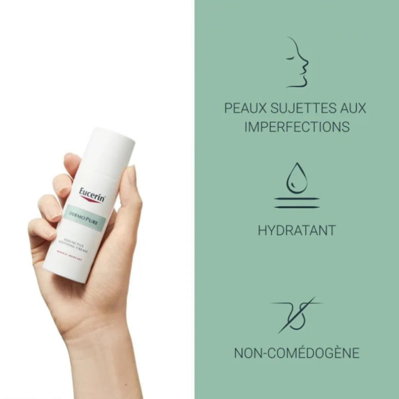 EUCERIN DermoPure HYDRA Crème Compensatrice Apaisante Atténue les effets secondaires des traitements dermatologiques desséchants. Sa formule hydratante et non-collante apaise les irritations et réduit les sensations de tiraillements, ainsi que les rougeurs. Ce soin aide ainsi à reprendre le contrôle face aux besoins des peaux à imperfections
