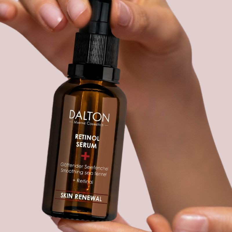 Le DALTON Retinol Serum repose sur une approche innovante qui combine trois formes complémentaires de vitamine A : le rétinol, le rétinal et un équivalent marin issu du fenouil de mer. Cette synergie permet d’obtenir des résultats visibles tout en respectant l’équilibre cutané.