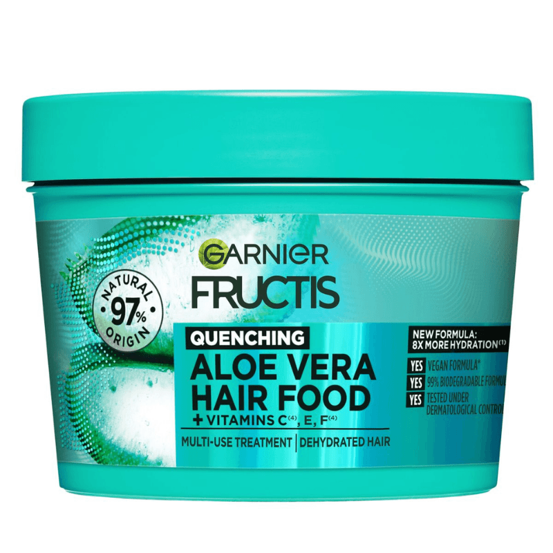 Garnier Ultra Doux Hair Food Masque Aloe Vera 390ml est un soin capillaire 3-en-1 spécialement conçu pour les cheveux déshydratés. Enrichi en aloe vera et vitamines C, E et F, il hydrate intensément, renforce la fibre capillaire et apporte douceur et brillance pour des cheveux visiblement plus sains.