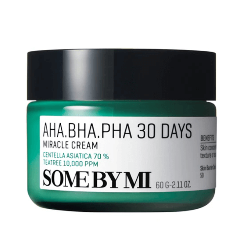 La SOMEBYMI AHA BHA PHA 30 Days Miracle Cream est une crème hydratante et réparatrice conçue pour améliorer visiblement l’état des peaux sujettes à l’acné, aux rougeurs et aux inflammations. Sa texture légère pénètre rapidement sans laisser de fini gras.